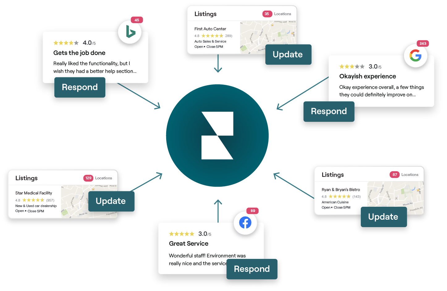Keep your critical business details – like name, address, phone Number, and business hours – perfectly synchronized across all major listing platforms, including Google, Yelp, Facebook, Apple Maps, and Bing.