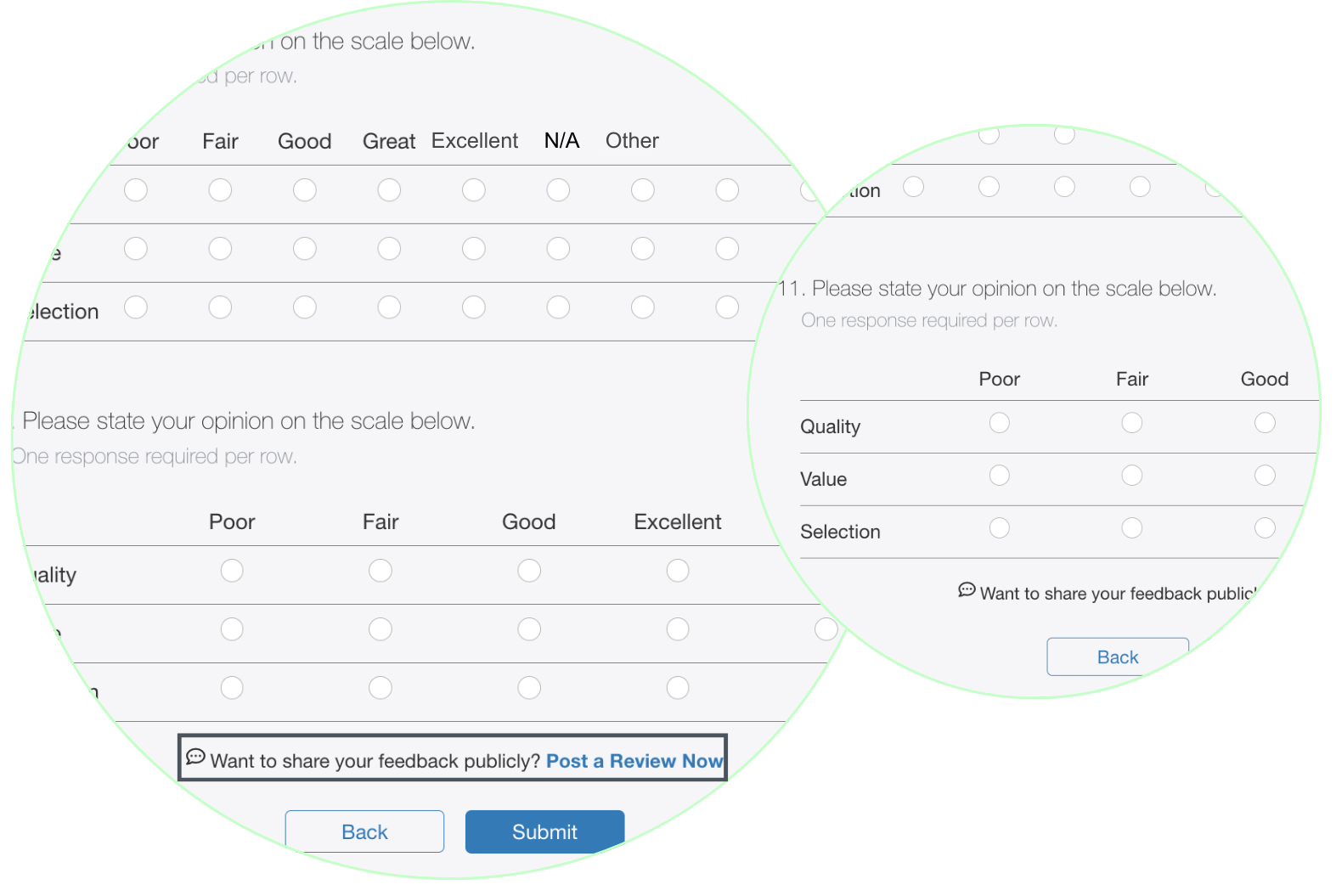 - Post Review Link: Respondents can now share their feedback at any point during the survey, eliminating the need to wait until the end. Allowing reviews at any point in the survey encourages genuine responses, which not only builds trust with respondents, but also supports a more accurate reflection of their experiences; and once they’ve submitted their review, they can return to the survey right where they left off. Post Review Link ensures the review collection practices are fully aligned with FTC guidelines and helps you avoid penalties of non-compliance.