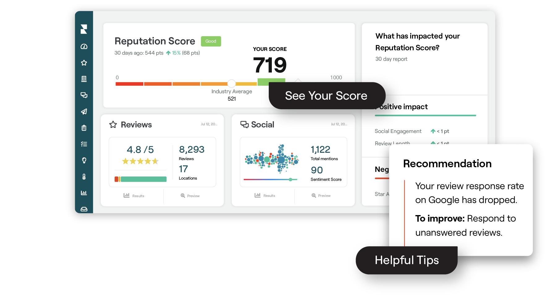 See Everything in One Place: Aggregate feedback from Google, Yelp, Facebook, and more—no switching between tools.